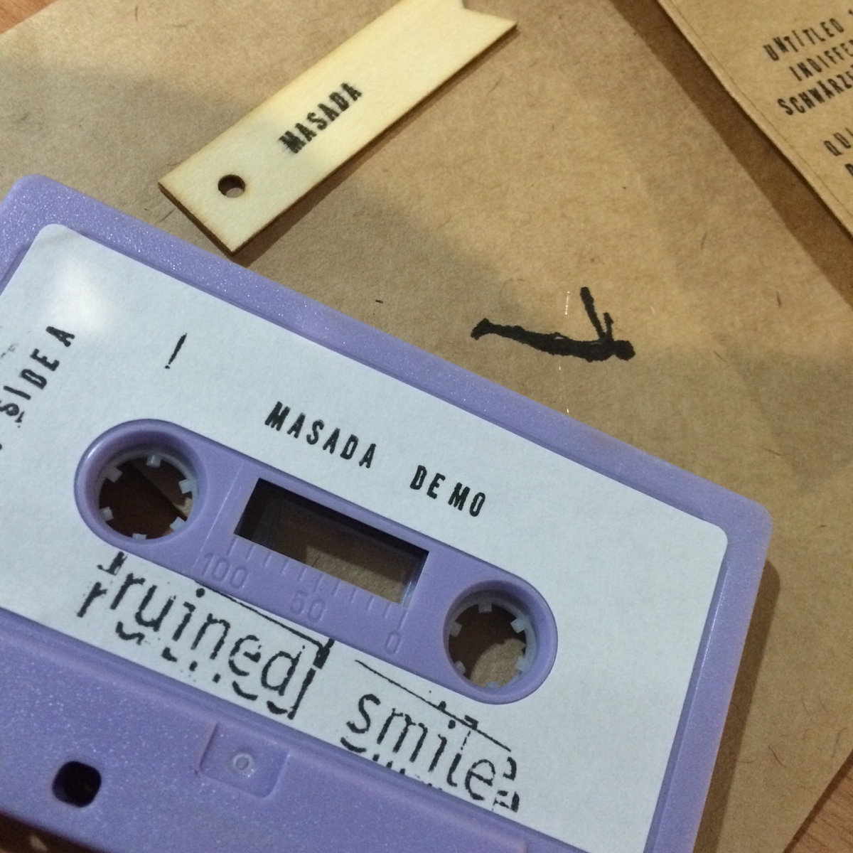 Hand-dubbed light purple cassette tapes in ink-stamped brown paper sleeves/envelopes with insert.